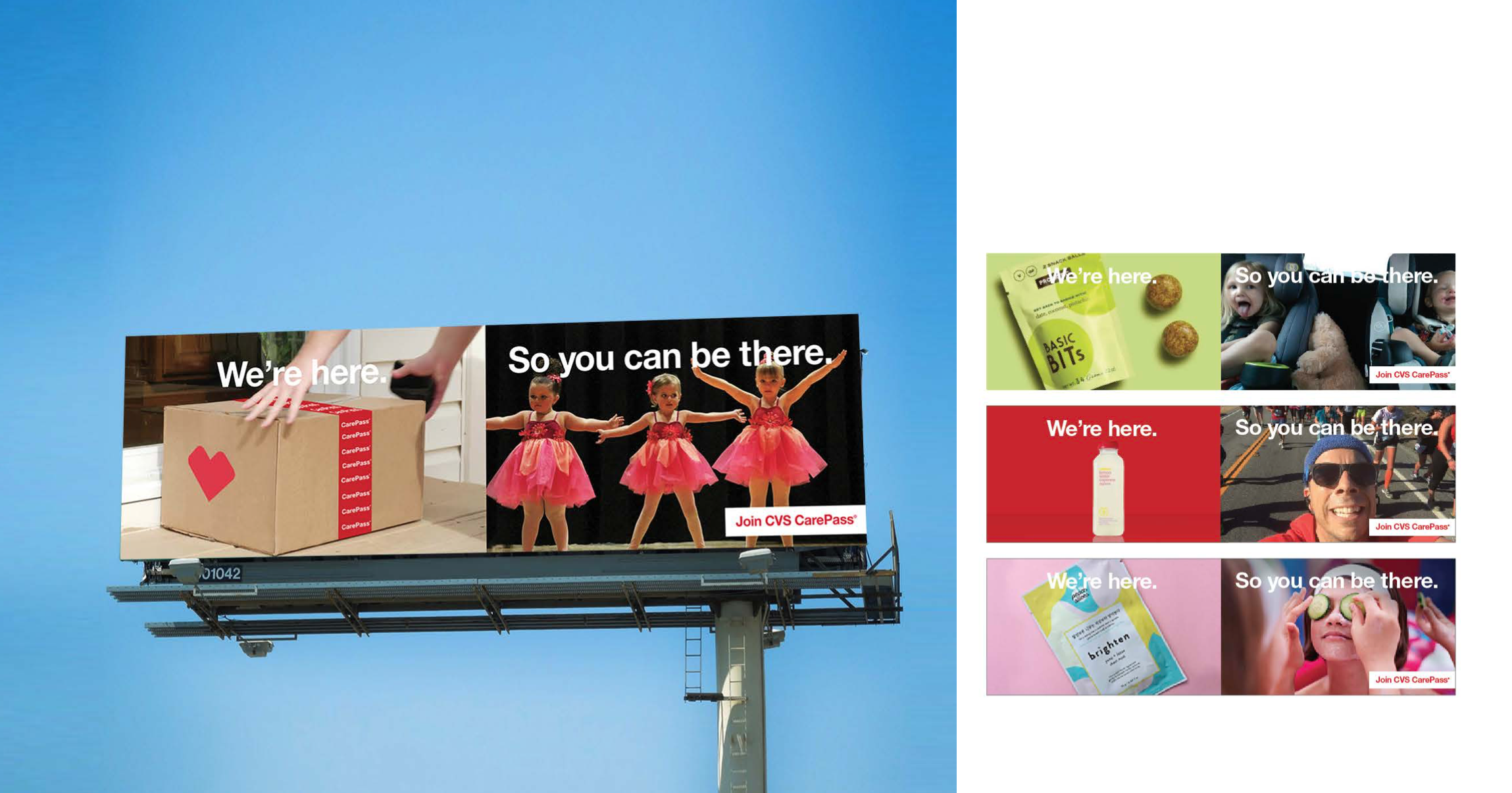 Worked as a CD with the CVS internal agency and ultimately the CVS agency of record to concept, present, and produce the CVS CarePass launch campaign. This integrated campaign included several types of media (outdoor, social, email, video).