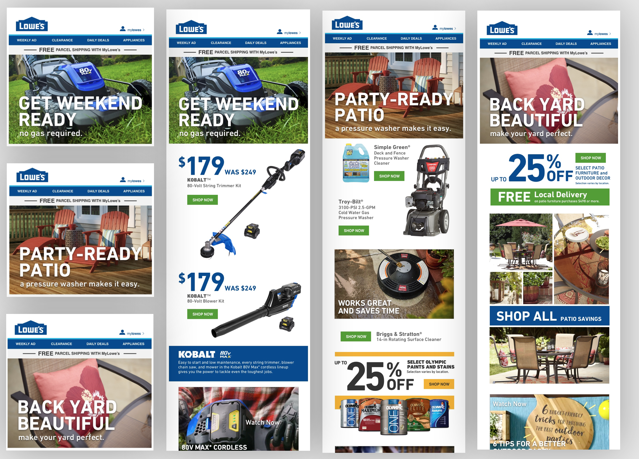 I was asked by Lowe’s Home Improvement to analyze their weekly, promotional email program and guide the internal team to come up with a new way of presenting products. We took their weekly program, which was just a copy and paste from their weekly flyers and turned it into a theme-based communications flow. Sales results remained consistent, and brand metrics increased.